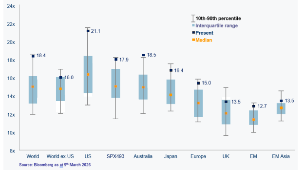 Even with the recent retracement global share markets continue to be expensive, based on the Price to Earnings (P/E) ratio.